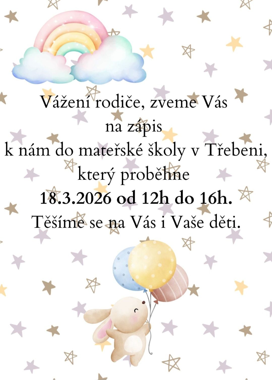 Informace o zápisech dětí do MŠ v Třebeni a Milhostově